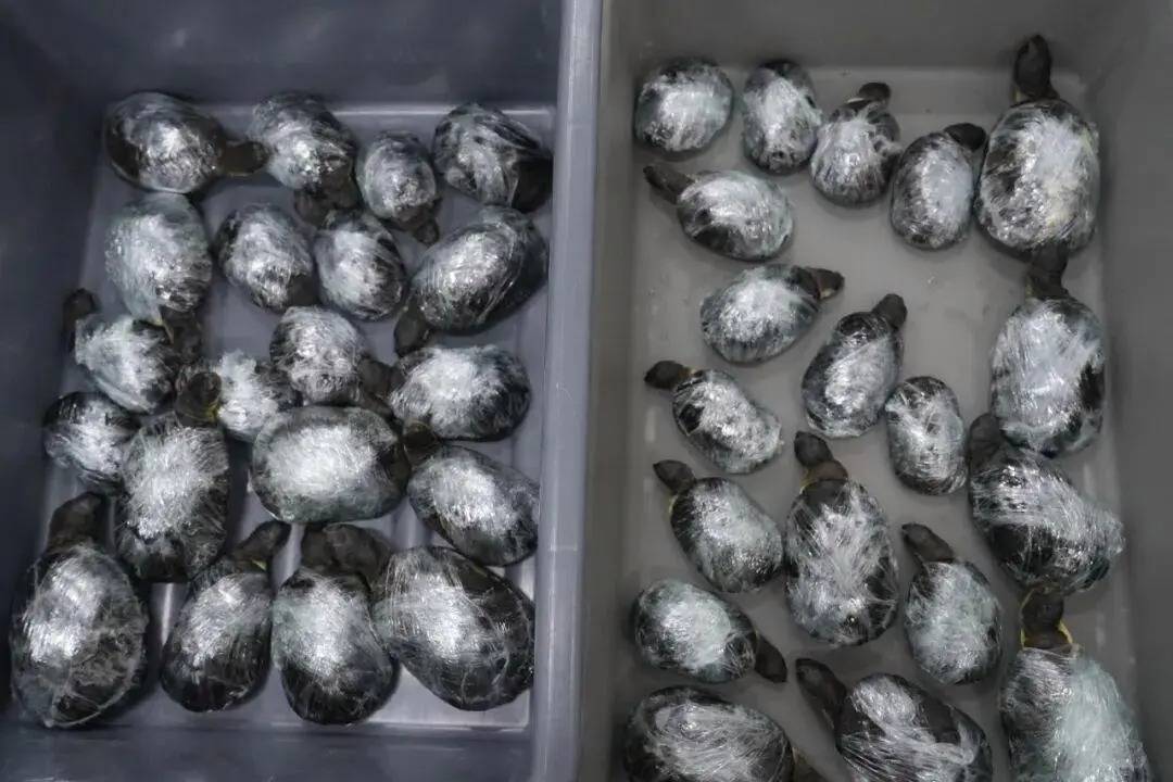 近日,文锦渡海关查获两名进境旅客绑藏外来物种活体侏儒侧颈龟68只。